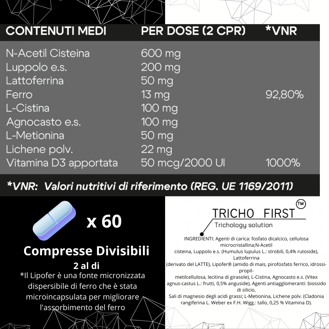 Il primo prodotto Trichofirst specifico per la donna. Il Prodotto contiene le sostanze utili per rallentare il processo di miniaturizzazione e caduta eccessiva. Di supporto alle terapie: